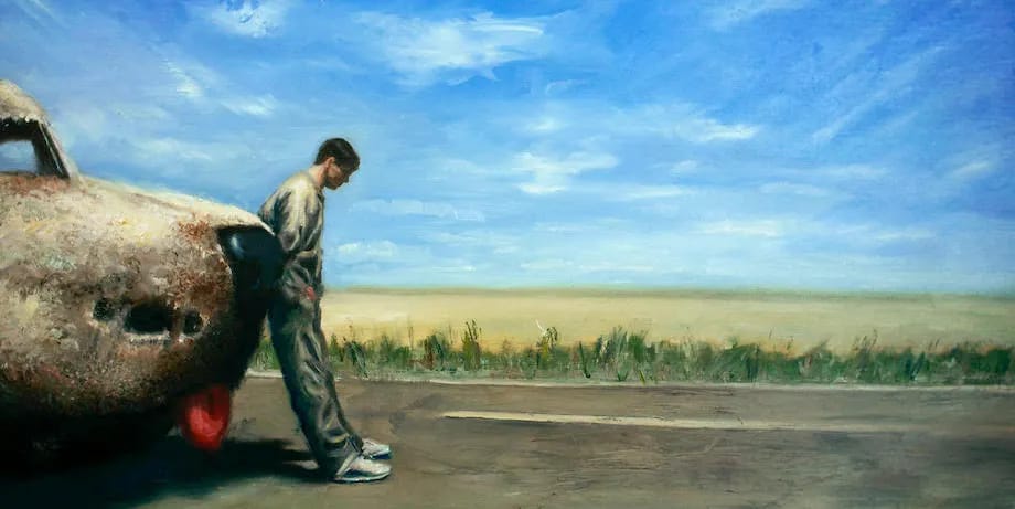 He rests despondently against the hood of the van in the middle of nowhere. The thing that got them moving wasnāt strong enough to keep them going. What once felt exciting now just feels⦠foolish.